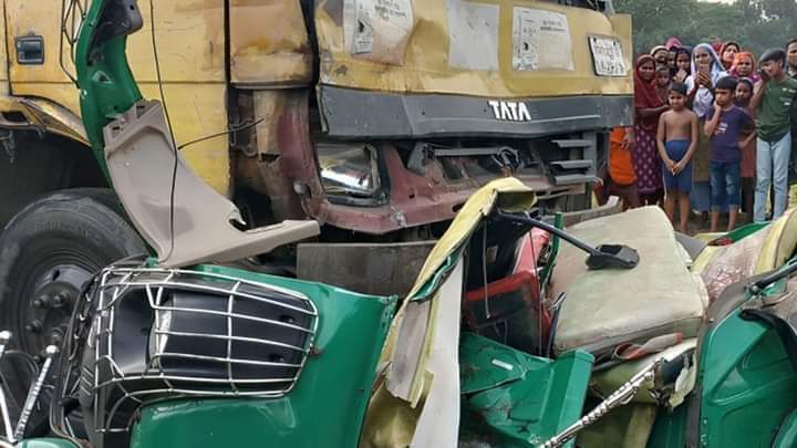 অটোরিকশাটি উপজেলার চক্রধা ইউনিয়নের পচারবাড়ি নামক স্থানে পৌঁছালে অপরদিক থেকে আসা ইটাখোলাগামী একটি ট্রাকের সঙ্গে মুখোমুখি সংঘর্ষ হয়। এতে সিএনজিটি একেবারে দুমড়ে মুচড়ে যায়।