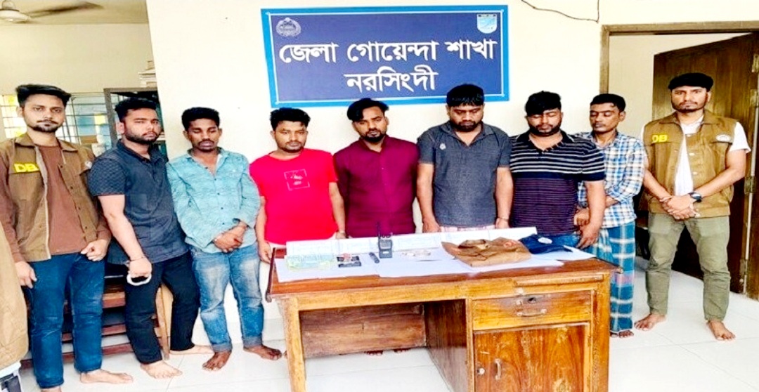গ্রেপ্তারকৃতরা হলো- নারায়ণগঞ্জ জেলার রূপগঞ্জ থানার সোনাব এলাকার মৃত তারা মিয়ার ছেলে মো. নাদিম হোসেন আনিছ (২৯), রূপসি এলাকার মৃত নুরুল হক মীরের ছেলে মো. তোহা মীর শাওন (৩৮), নরসিংদীর মাধবদী থানার ছোট গদাইরচর এলাকার মো. বাবুল মিয়ার ছেলে মো. অন্তর (২৮), আলগী কান্দাপাড়া এলাকার মো. ইউসুফ মিয়ার ছেলে মো. আল আমিন (২৫), নারায়ণগঞ্জ জেলার বন্দর থানার পশ্চিম কেওঢালা এলাকার মো. ইব্রাহিম মিয়ার ছেলে মো. মামুন (২৯), হবিগঞ্জ জেলার সৈয়দপুর এলাকার মৃত সমসু শামসু মিয়ার ছেলে মো. সোহেল মিয়া (৩৫) ও ময়মনসিংহ জেলার ঈশ্বরগঞ্জ থানার মালিহাটা এলাকার মো. আলী হোসেন এর ছেলে মো. ইলিয়াছ (২৩)।
