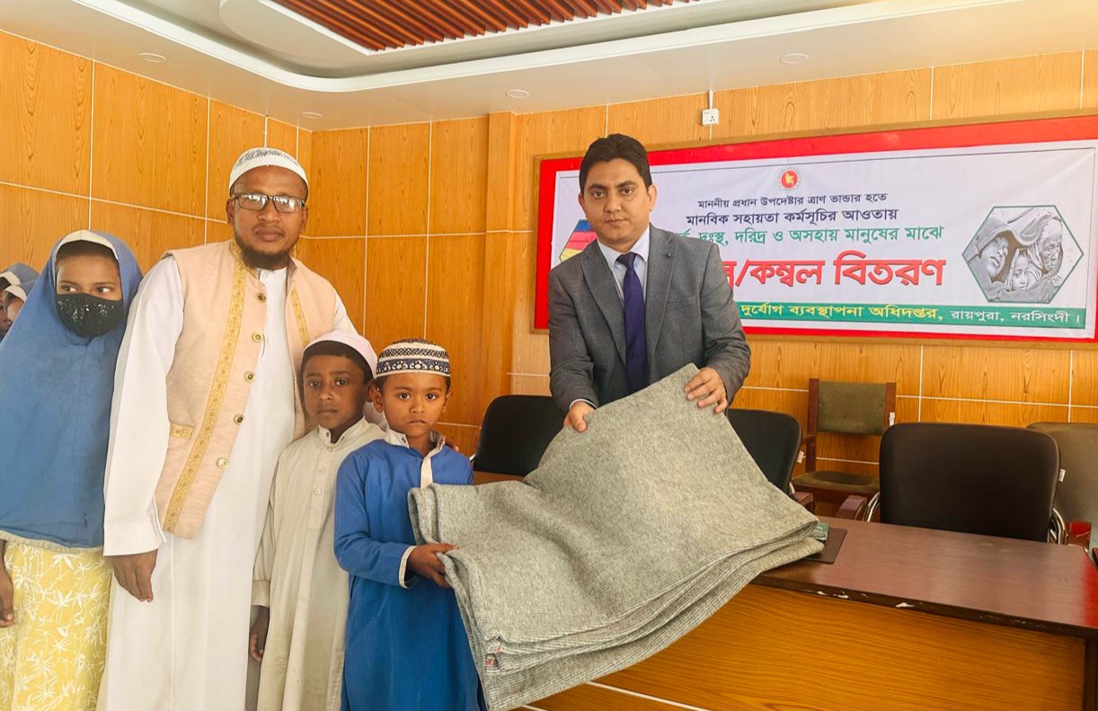মঙ্গলবার (৭ জানুয়ারি) দুপুরে নরসিংদীর রায়পুরা উপজেলা গণ মিলনায়তনে সরকারের ত্রাণ ভান্ডার হতে মানবিক সহায়তা কর্মসূচির আওতায় শীতার্ত দু:স্থ, দরিদ্র, অসহায় ও বিভিন্ন এতিমখানায় এতিম, পথ শিশুদের মাঝে উপজেলা প্রশাসনের পক্ষ থেকে ৫০০ শত কম্বল দেওয়া হয়।
