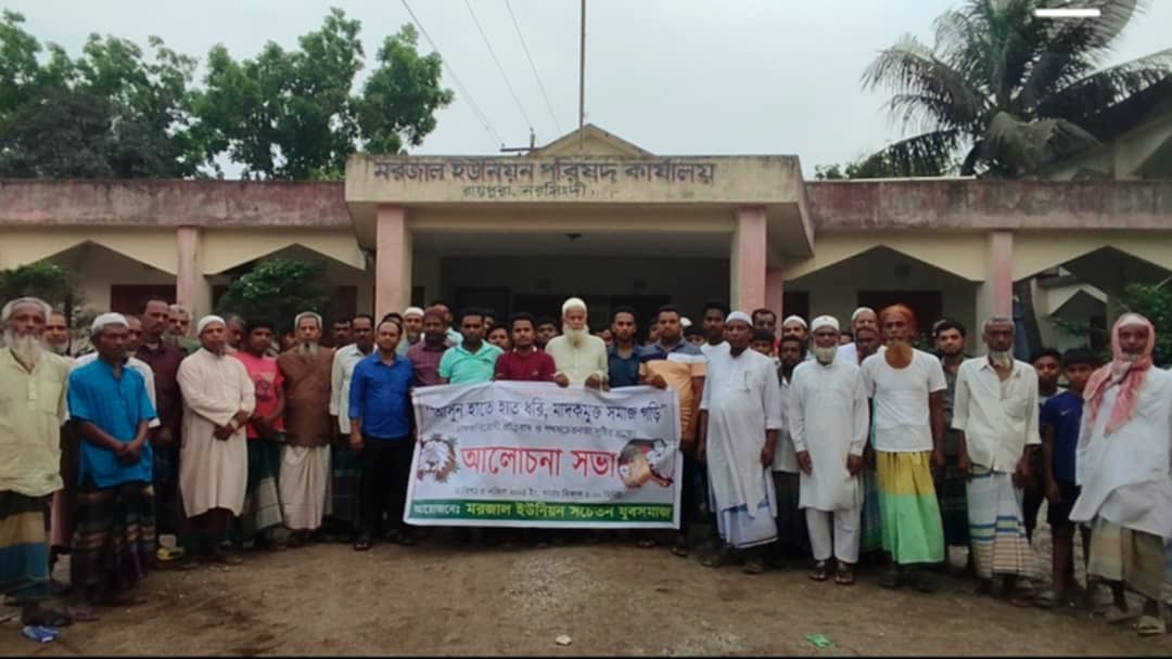 রায়পুরা (নরসিংদী) প্রতিনিধি: "আসুন হাতে হাত ধরি, মাদকমুক্ত সমাজ গড়ি" এই প্রতিপাদ্যকে সামনে রেখে নরসিংদীর রায়পুরা উপজেলার মরজাল ইউনিয়নের এক আলোচনা সভা অনুষ্ঠিত হয়েছে।