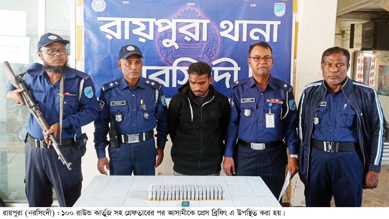 পরে মঙ্গলবার (১৭ ডিসেম্বর) দুপুরে রায়পুরা থানায় এক সংবাদ সম্মেলনের মাধ্যমে এ তথ্য নিশ্চিত করে রায়পুরা থানার অফিসার ইনচার্জ মো. আদিল মাহমুদ। তিনি বলেন, গোপন সংবাদের ভিত্তিতে বিশেষ অভিযান পরিচালনাকালে যাত্রীবাহী মামুন পরিবহন ঢাকা মেট্রো-ব-১৫-৪১৩০ যোগে সিলেট সুনামগঞ্জ হইতে ঢাকা শহরের দিকে আসার সময় রায়পুরা উপজেলার মির্জাপুর ইউনিয়নের ঢাকা-সিলেট মহাসড়কের মাহমুদাবাদ এলাকা থেকে একশত কার্তুজসহ জুয়েল মিয়া রাসেল নামে এক যুবককে আটক করা হয়। এসময় তার হাতে থাকা একটি ব্যাগ থেকে একশত শর্টগানের ব্যবহৃত কার্তুজ (গুলি), একটি স্যামসাং এর মোবাইল ফোন উদ্ধার করা হয়। পরে তাকে জিজ্ঞেসাবাদে সে জানায়, কার্তুজ (গুলি) গুলো রায়পুরা উপজেলার বাঁশগাড়িতে সে দীর্ঘদিন যাবৎ সরবরাহ করে আসছে।