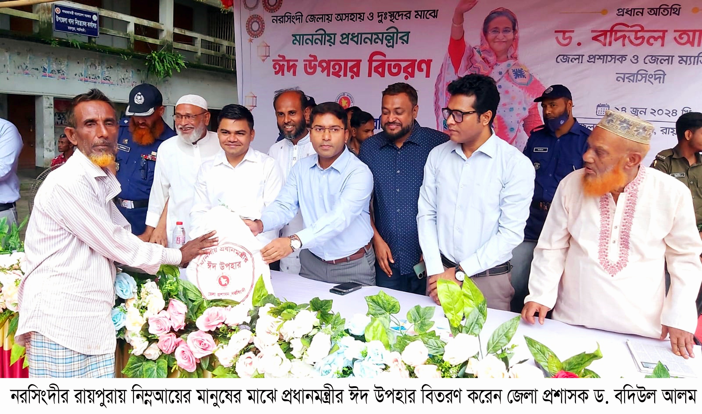 নরসিংদীর রায়পুরা উপজেলার বিভিন্ন এলাকার নিম্ন আয়ের প্রায় ৭শ মানুষের মাঝে মাননীয় প্রধানমন্ত্রীর ঈদ উপহার সামগ্রী বিতরণ করা হয়েছে।