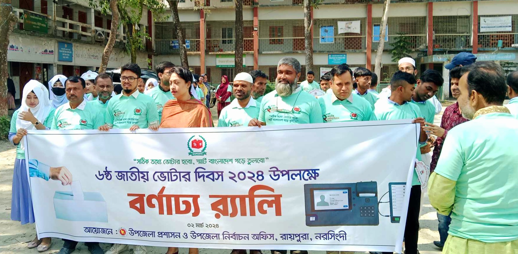 নরসিংদী রায়পুরায় ‘সঠিক তথ্যে ভোটার হব, স্মার্ট বাংলাদেশ গড়ে তুলবো’ এই স্লোগানকে সামনে রেখে শনিবার (২মার্চ) সকালে পালিত হল জাতীয় ভোটার দিবস।