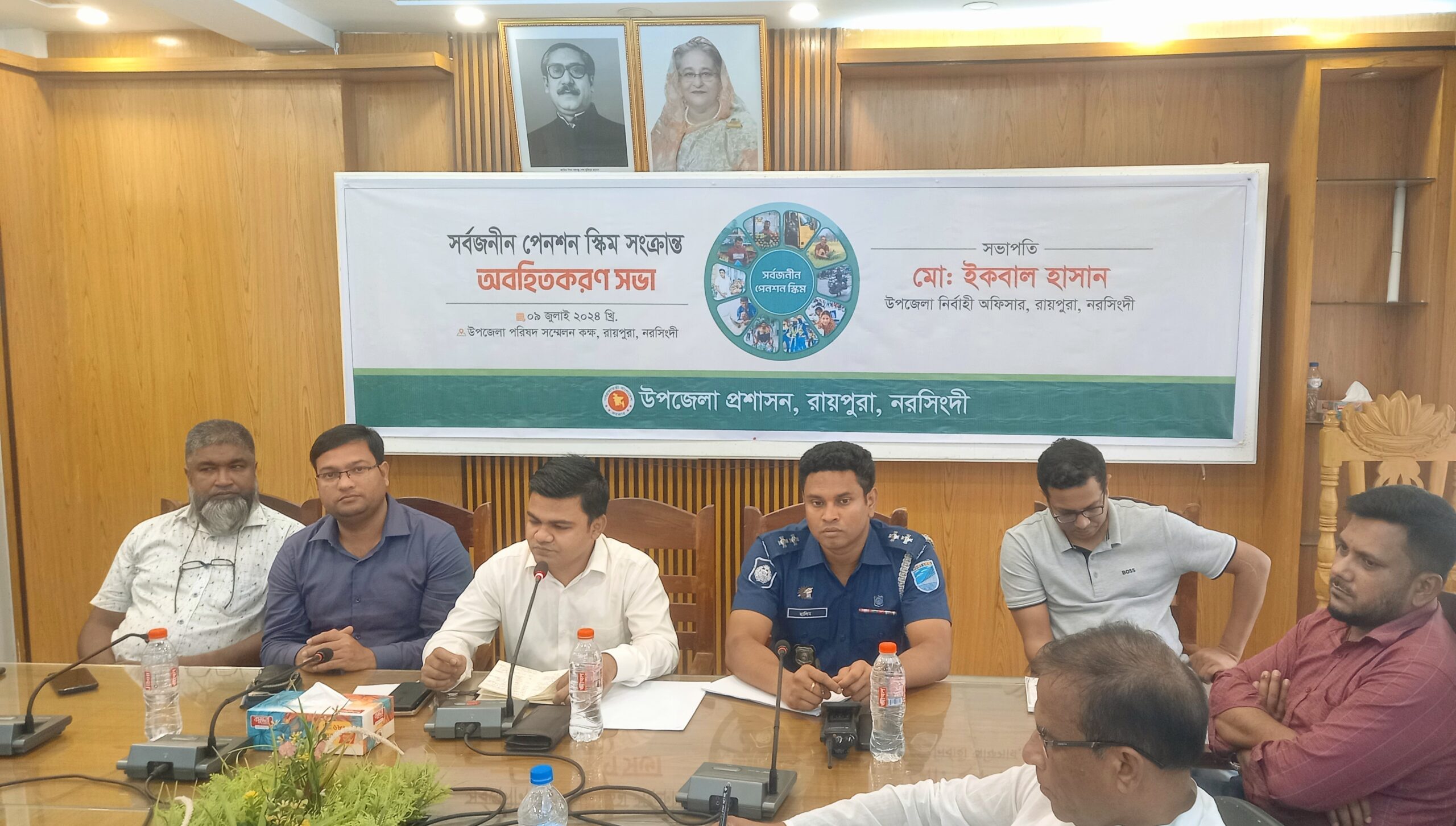 নরসিংদীর রায়পুরায় সর্বজনীন পেনশন স্কিম সভা অনুষ্ঠিত হয়েছে। মঙ্গলবার (৯জুলাই) সকালে উপজেলা পরিষদ সম্মেলন কক্ষে ওই অবহিতকরণ সভা অনুষ্ঠিত হয়।