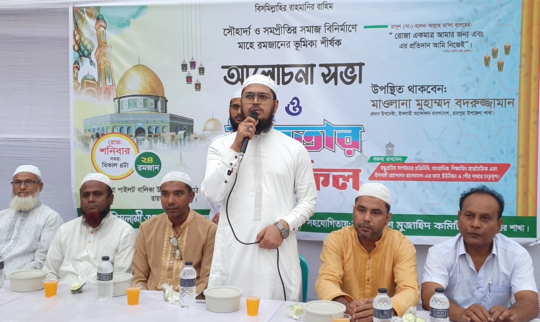 ইসলামী আন্দোলন বাংলাদেশ রায়পুরা উত্তর শাখার আয়োজনে আলোচনা সভা ও ইফতার মাহফিলে প্রধান অতিথি হিসেবে উপস্থিত ছিলেন রায়পুরায় সম্প্রীতির রাজনীতির প্রবর্তক, তারুণ্যের প্রতীক, গণমানুষের আস্থাভাজ নেতা হাফেজ মাওলানা মুহাম্মদ বদরুজ্জামান বদরুজ্জামান।