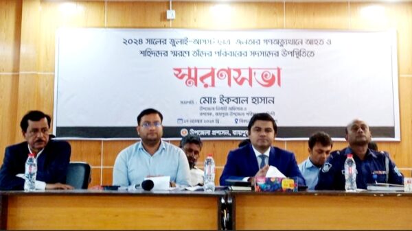 রায়পুরা (নরসিংদী) প্রতিনিধি : নরসিংদীর রায়পুরায় বুধবার (২৭নভেম্বর) বিকেলে উপজেলা প্রশাসনের আয়োজনে ছাত্র-জনতার গণঅভ্যুত্থানে আহত ও নিহতদের  স্মরণে তাদের পরিবারের সদস্যদের উপস্থিতিতে স্মরণ সভা ও দোয়া মাহফিল অনুষ্ঠিত হয়েছে। উপজেলা